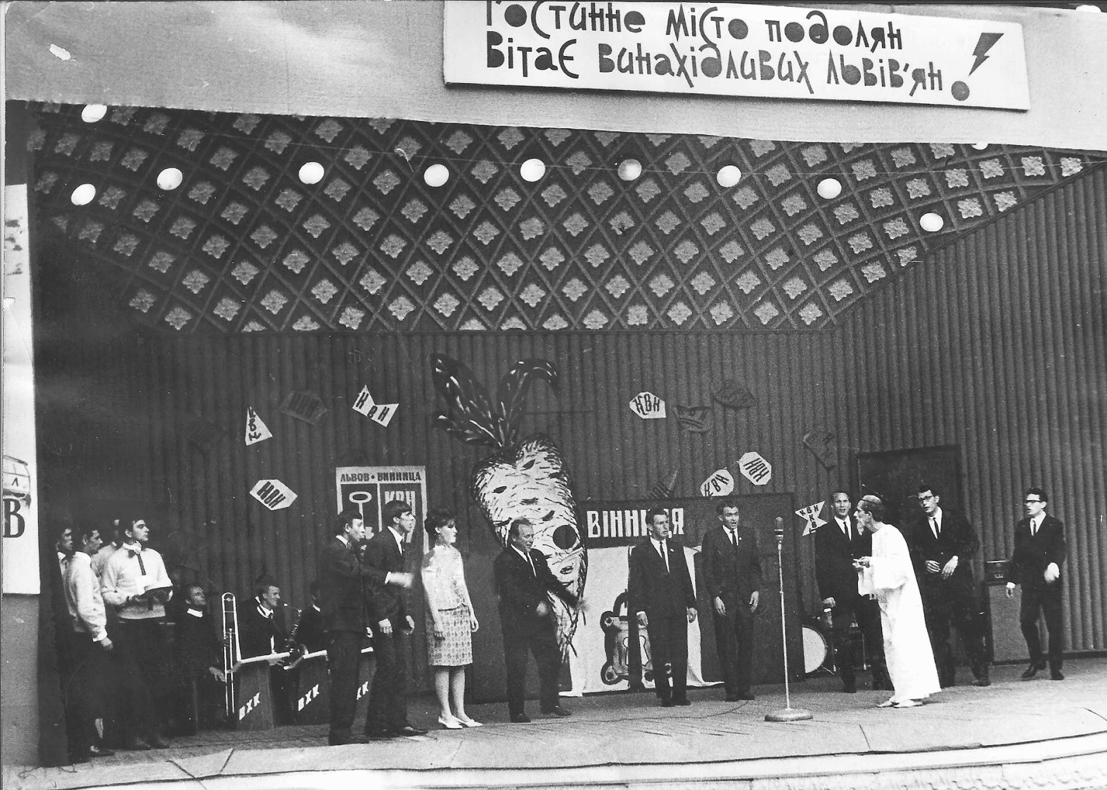 Первым городом, с которым винничане соревновались в юморе, стал Львов. Мероприятие проходило в 1967 и 1968 годах. Оба раза Винница одерживала победу. В 1969 году винничане получили приглашение в Москву на съемки телепередачи, но тогдашнее руководство не поддержало и отказалось от поездки. Это снизило пыл юмористов и на несколько лет КВН прекратил свое существование.