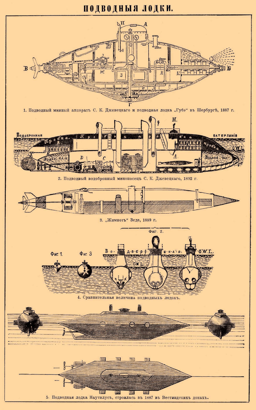 Одним із найбільших досягнень Джевецького стала розробка підводних човнів. Перший його прототип він створив у 1878 році. Це був невеликий одномісний апарат, що приводився в рух ногами, наче велосипед. Винахід, хоча й мав обмежені можливості, привернув увагу військових, оскільки міг бути використаний для непомітного підходу до ворожих кораблів. Цей успіх надихнув героя нашої статті вдосконалювати конструкцію свого підводного човна, експериментуючи з різними видами двигунів.